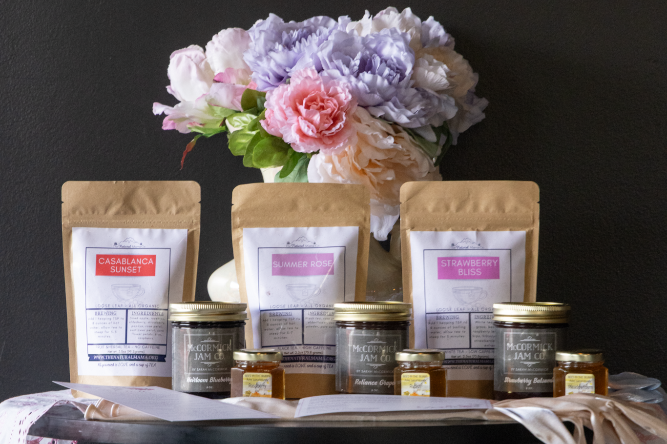 With some creative marketing help from our local Farmer’s Market friend Frankie (@savoringspoonfuls), and the wonderful collections of jams from McCormick Jam Co and teas from Natural Mama Co, we managed to host not one, but two elegant tasting experiences in the cozy lounge at The Dusty Shelf bookstore, in Enumclaw, WA.